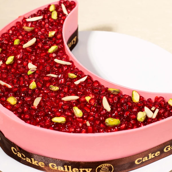 Moist red velvet moon cake with smooth cream and rich ruman flavor. Perfect for Iftar and Ramadan gifting.